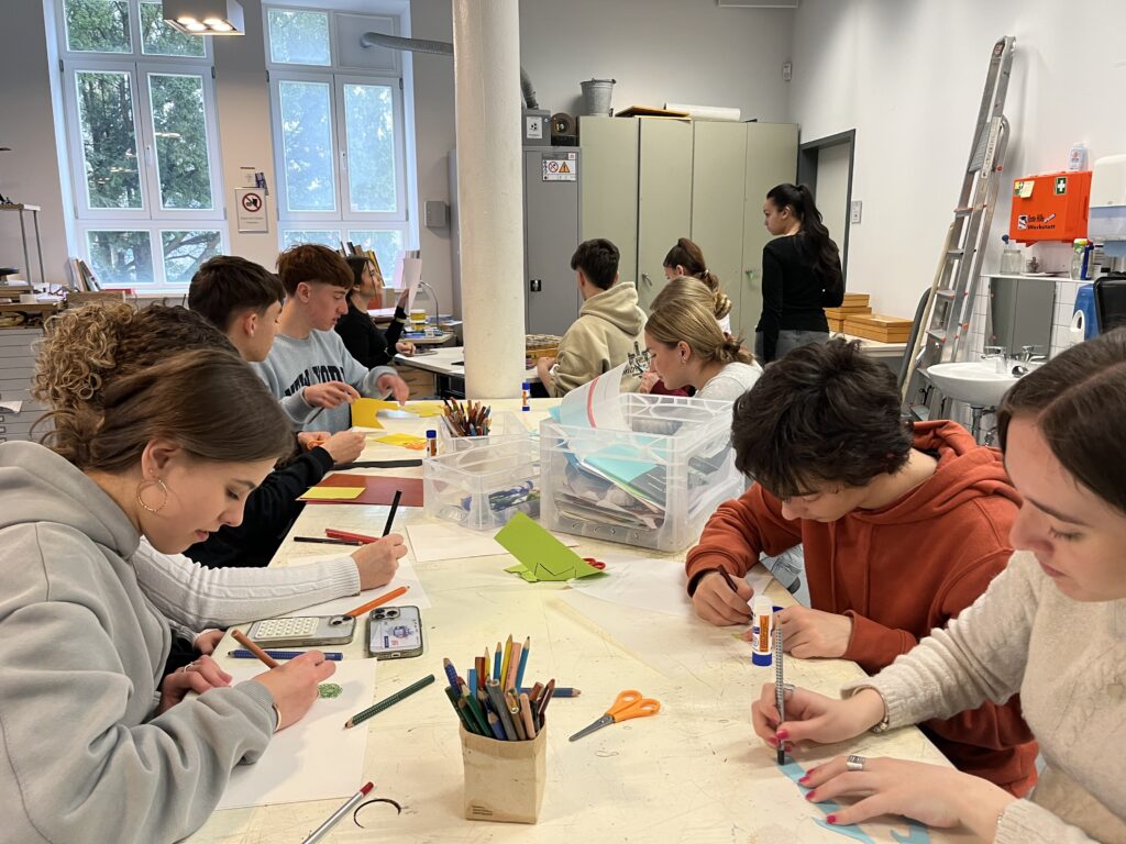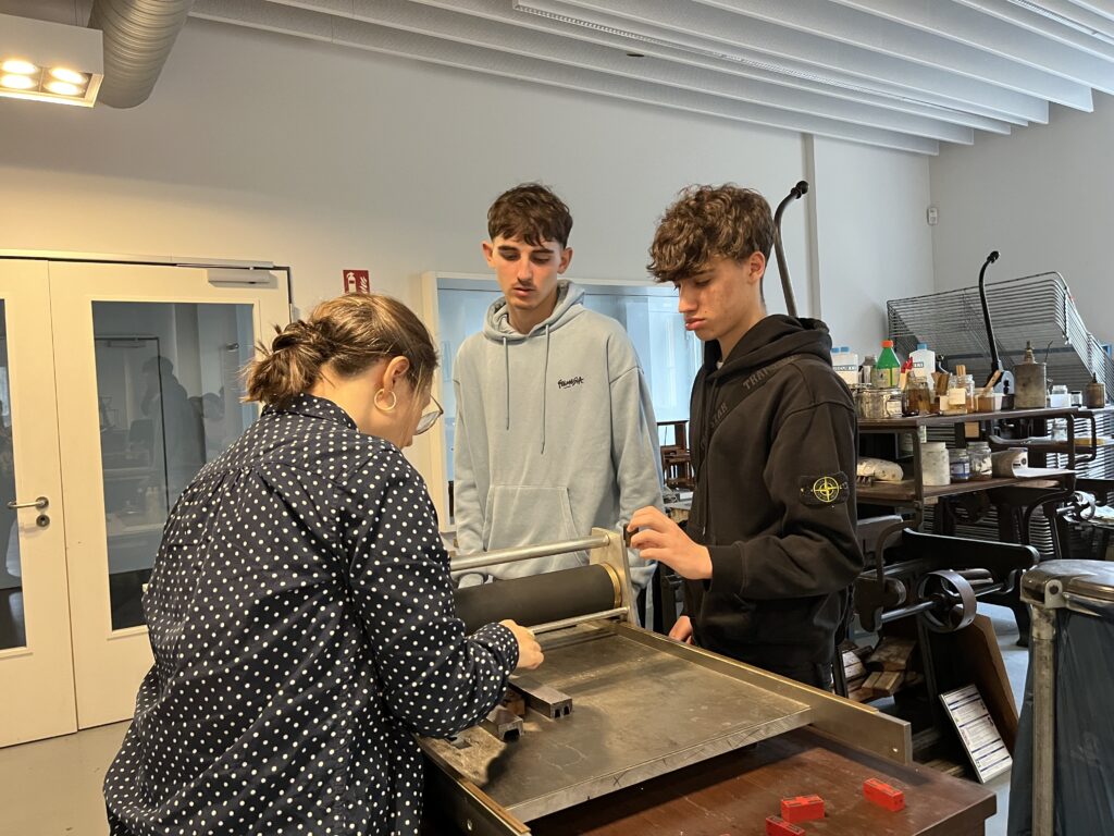 Letzte Woche besuchten uns Schülerinnen und Schüler aus der Schule Valmayor aus Madrid. Sie besuchen uns aufgrund eines Erasmus Programmes. Das Thema des Programmes lautet: „Demokratische Werte und Frieden in Europa“. Zusammen mit Schülerinnen der 10c besuchten sie einen Workshop im Klingspor Museum. Dabei druckten sie ihr eigenes Grundgesetz.