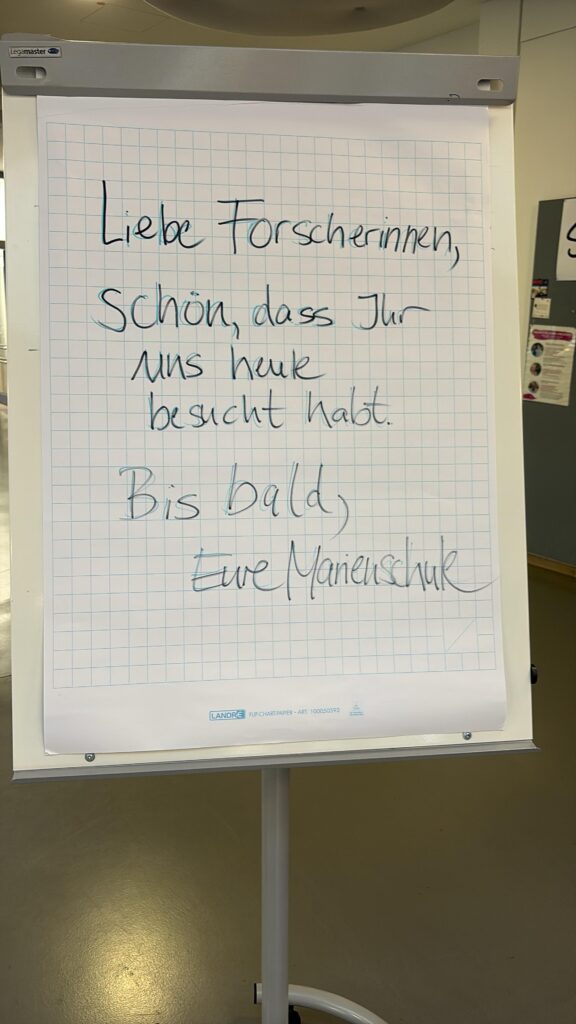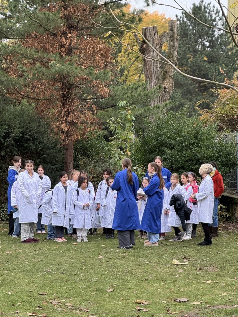 Rund 100 kleine Forscherinnen wurden im Schulhaus in weißen Kitteln und Brillen gesichtete, die in kleinen Gruppen, betreut von unseren Oberstufenschülerinnen, rund um die Frage „warum das Blaukraut manchmal rot ist“ experimentierten. Es wurde viel gelacht, ausprobiert, diskutiert und am Ende natürlich unsere Frage zum Kraut beantwortet. Das Organisationsteam und alle Teilnehmer sind sich einig, es hat wieder richtig Spaß gemacht zu forschen und wir freuen uns schon auf 2026.