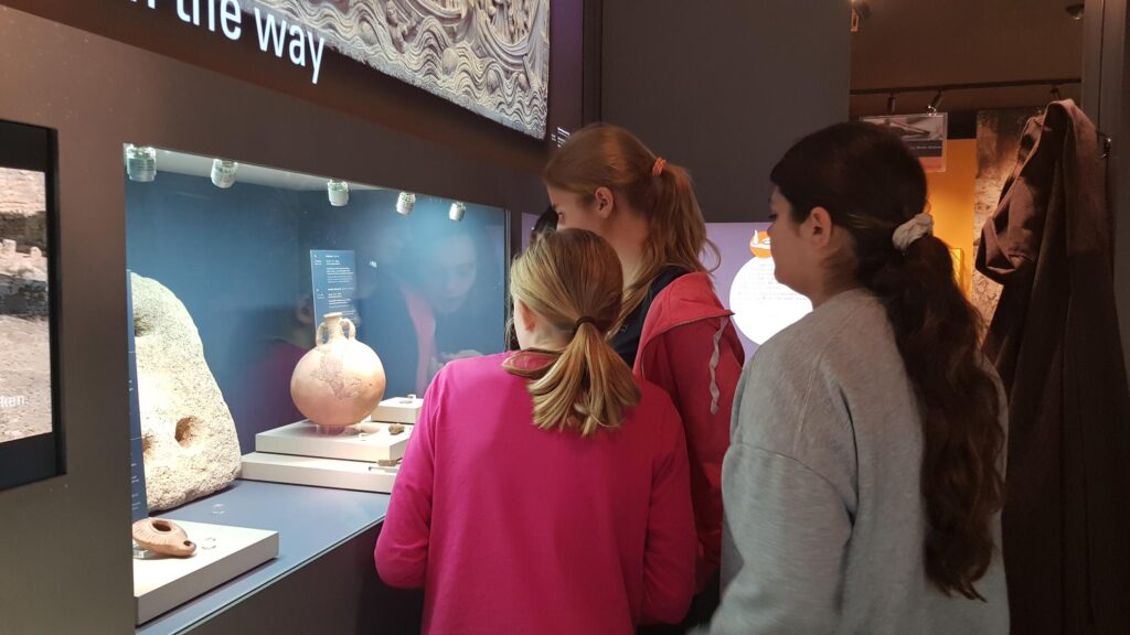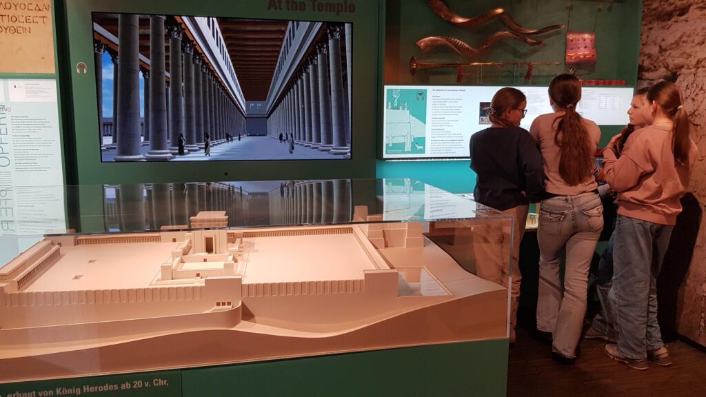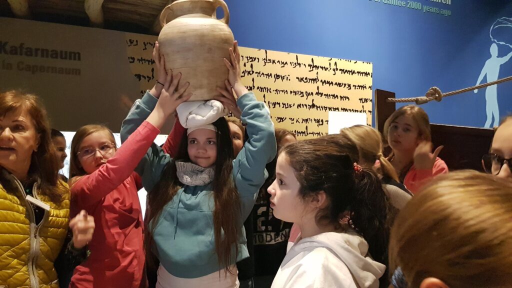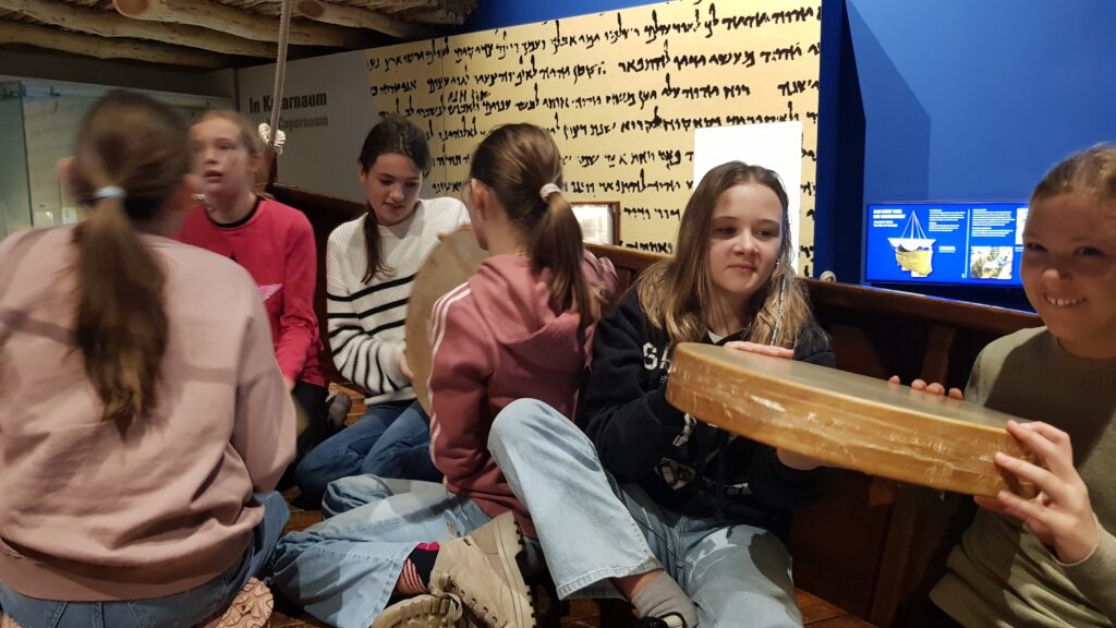 Das Bibel-Erlebnismuseum in Frankfurt wird wirklich seinem Namen gerecht: Die Klassen 6a und b konnten die Sturmstillung auf dem See Genezareth in einem echten Boot zu erleben mit selbst gemachten täuschend echten Sturmgeräuschen. Mit Abraham und Sarah in einem Nomadenzelt zu sitzen, einen Wasserkrug auf dem Kopf zu tragen und schließlich eine eigene Bibelseite zu drucken, waren weitere Höhepunkte.